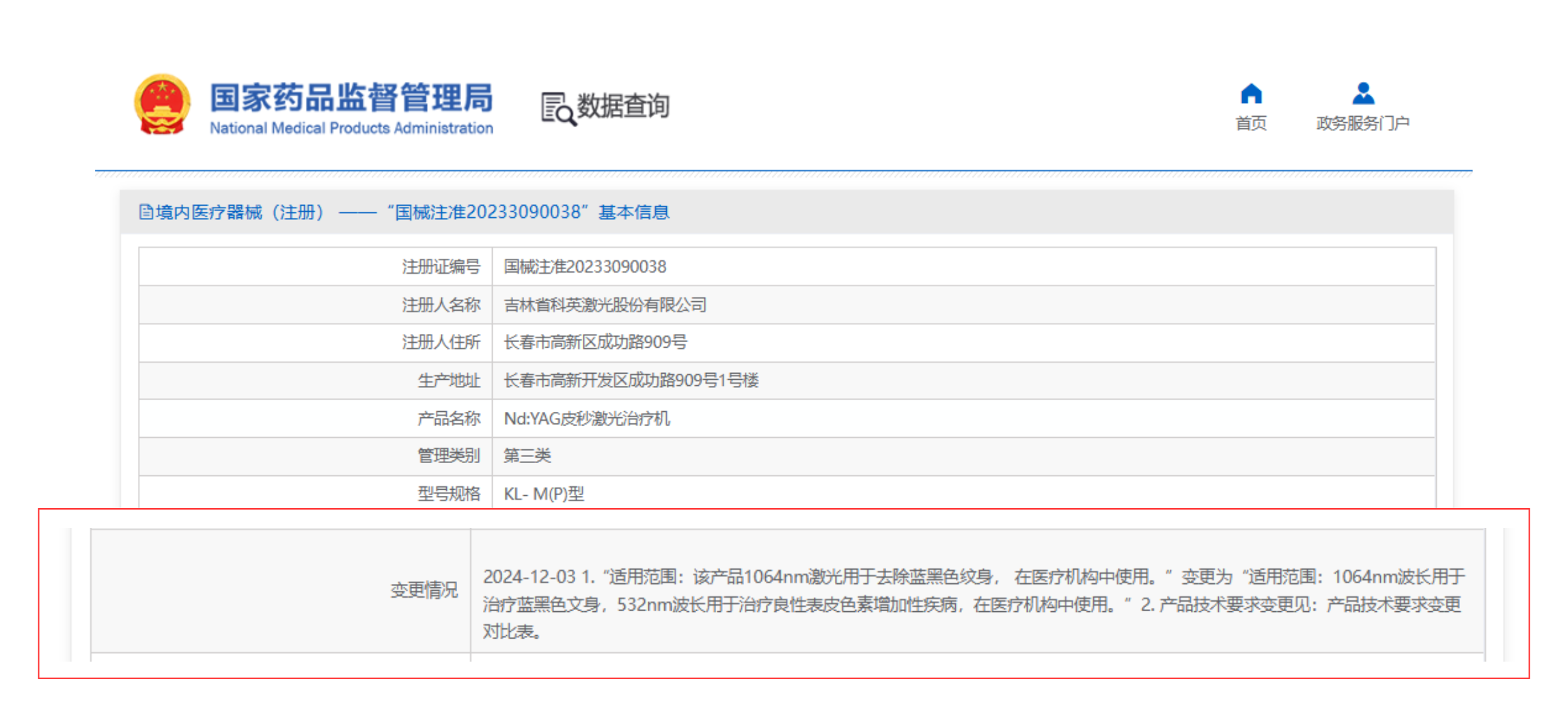 2024年12月3日,科英激光Nd:YAG皮秒激光治療機重磅升級獲得國家藥品監(jiān)督管理局注冊批準,在原有型號基礎上新增532nm波段,用于治療良性表皮色素增加性疾病,從而更好服務臨床治療需求。