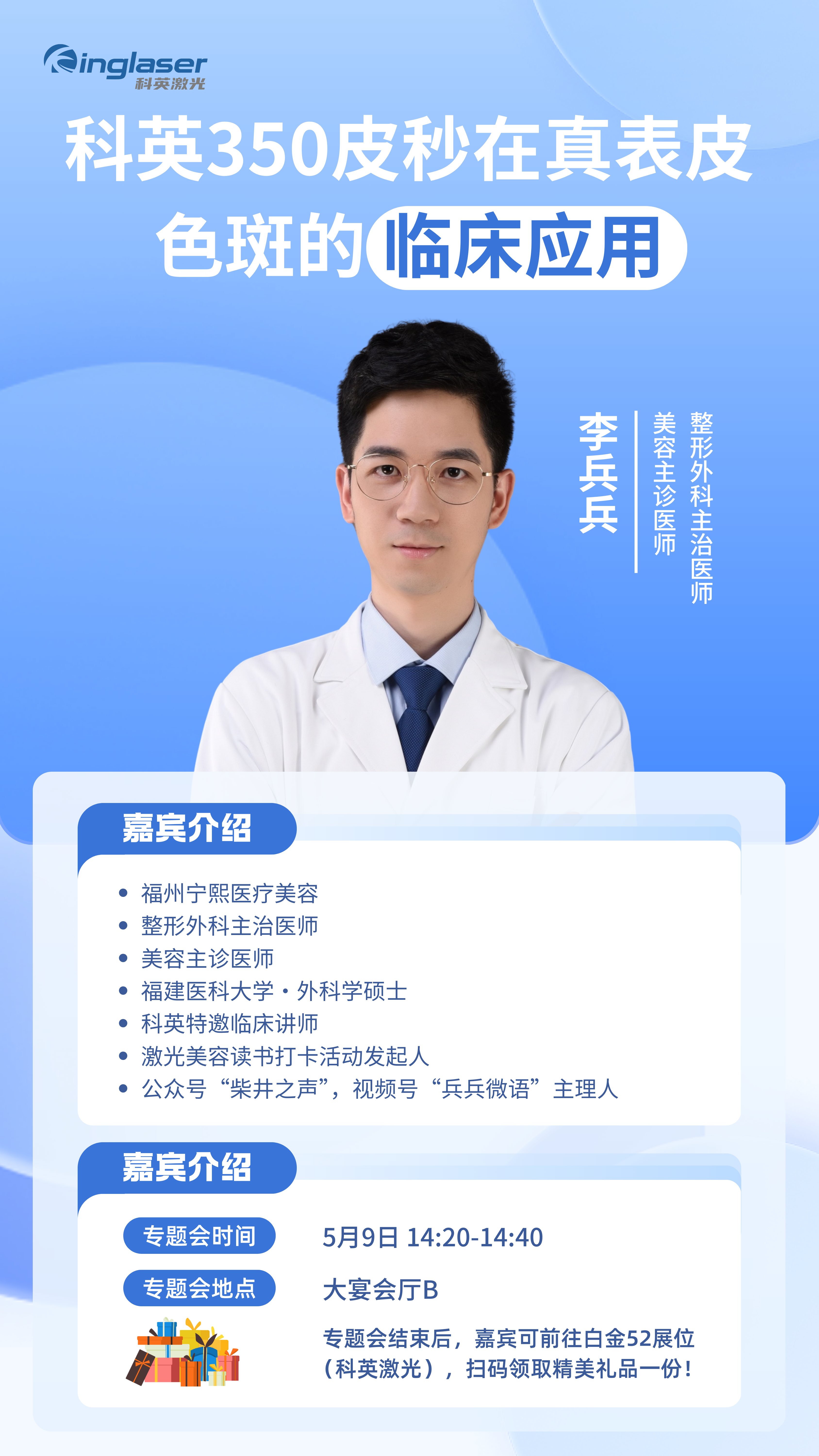 會(huì)議期間,福州寧熙醫(yī)療美容李兵兵老師將為大家?guī)?lái)《科英350皮秒在真表皮色斑的臨床應(yīng)用》分享,屆時(shí)歡迎前來(lái)學(xué)習(xí)交流。